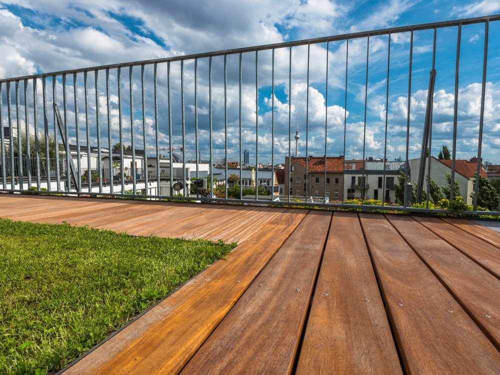 Eine fachgerechte Unterkonstruktion mit ausreichender Hinterlüftung ist entscheidend für die Lebensdauer der Terrasse. Ausreichende Dielenabstände unterstützen den Feuchtigkeitsaustausch und ermöglichen ein schnelles Abtrocknen nach Niederschlägen.