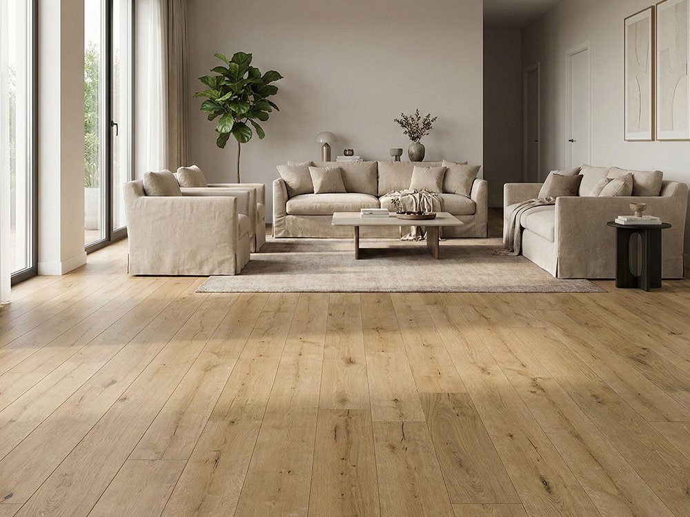 Dank der 2-fachen Oberflächenbehandlung mit WOCA Dänemark Naturöl und einem finalen Hartwachs-Finish ist dieses Parkett besonders robust. Der Boden ist bereits vollständig wohnfertig vorbereitet und überzeugt durch seine natürliche Ausstrahlung.